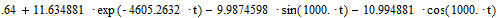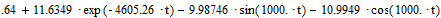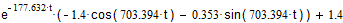 Подставив данные в (1.2.2) получим Uc(t)=e-177,632t(7cos(703.394t)-19.14sin(703.394t))+133 B