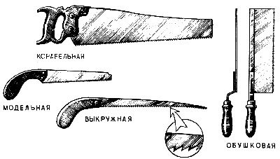 Ножовки (корабельные, обушковые) имеют свободное широкое полотно с зубьями различной формы и величины. Благодаря способности удерживать направление пропила ножовки очень удобны в моделировании.