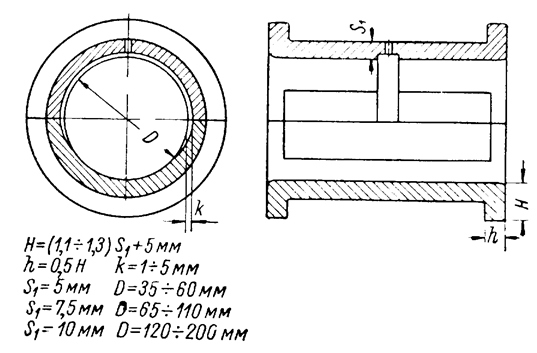 Вкладыши с заливкой антифрикционными сплавами изготовляются из чугунного литья СЧ21-40, стального литья (сталь 10) или бронзы (БрАЖС71,5-1,5, БрАЖН 11-6-6). Чугунное литье обладает наименьшей связью с антифрикционными сплавами. Для улучшения связи в чугунных вкладышах протачиваются пазы трапециевидного сечения (ласточкин хвост). Наиболее употребительными антифрикционными сплавами являются оловянистые баббиты Б83, Б16. В менее нагруженных подшипниках применяют свинцовистый баббит БН с присадками кадмия, никеля и мышьяка. При более нагруженных подшипниках баббит заменяют свинцовистой бронзой БрСЗО (вкладыш стальной).
