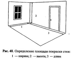 Для решения задачи о необходимом для работы количестве краски не придумаешь хуже места, чем… магазин красок. Площадь, которую нужно покрасить, нужно высчитывать до выхода из дома. Как это сделать поможет рис. 40.
