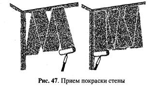 Первое движение валиком при покраске стены должно быть вверх – от себя. Нарисуйте большую букву «М» или «W» (рис. 47 ).