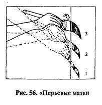 Каждый мазок кисти должен быть примерно равен по длине двум длинам щетины кисти, так называемые «перьевые мазки» (рис. 56 ).
