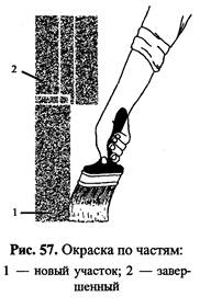 Когда вы красите поверхность значительно шире, чем ваша кисть, работайте по прямоугольным участкам (рис. 57 ).