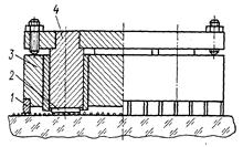 Наряду с двусторонним шлифованием широкое распрестранение получило одностороннее шлифование пластин, схема которого приведена на рис. 12. Пластины 2 помещают , в сепаратор 3 и прижимают грузом 4 к шлифовальнику 1.