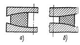 Рис. 14. Форма износа шлифовальника в виде вогнутости (а) или выпуклс- сти (б) и ее влияние на формообразование пластин