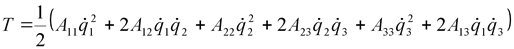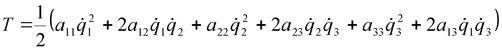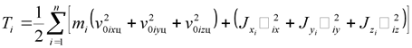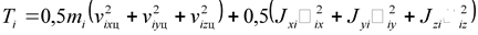 Используем выражение (1.2) для вывода уравнений динамики манипулятора. Рассматривая исполнительный механизм манипулятора как систему из n твердых тел, запишем его кинетическую энергию T в виде суммы кинетических энергий звеньев: