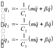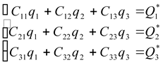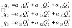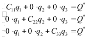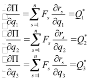 обозначены внешние обобщенные силы, вызванные весом звеньев и груза, удерживаемого в захватном устройстве. При наличии внешнего воздействия – силы