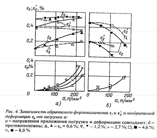 ации и внешней нагрузки на характеристики обратимого эффекта