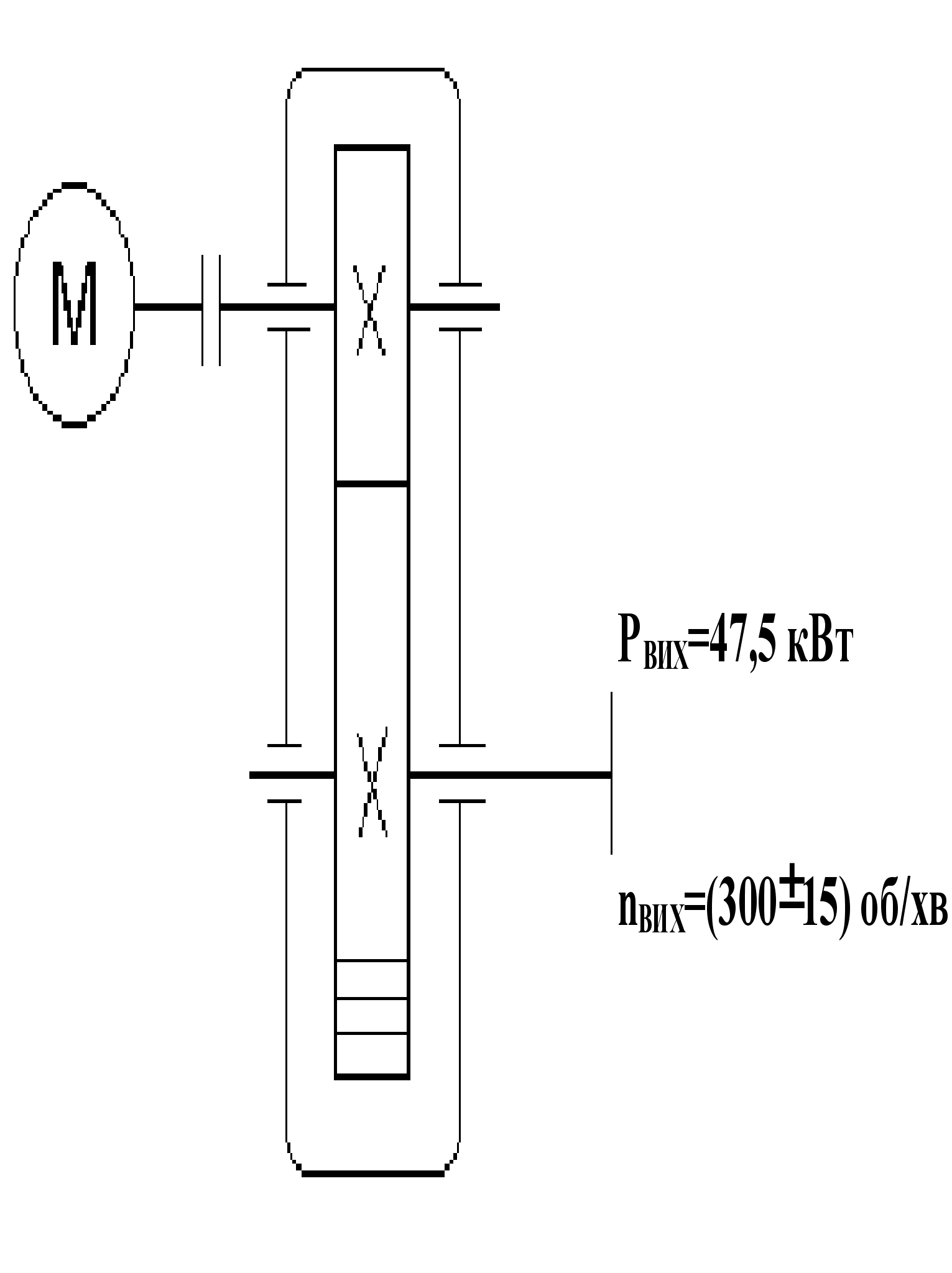 Запроектировать прямозубую цилиндрическую передачу при таких данных: мощность на исходном вале PВИХ=47,5 квт; частота обращения тихоходного вала nВИХ=(30015) об/мин; передача реверсивная; срок эксплуатации неконченый.