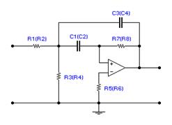 Сопротивления резисторов и емкости конденсаторов второго входного ПЧФ равны соответствующим сопротивлениям резисторов и емкостям конденсаторов первого входного ПЧФ, а именно