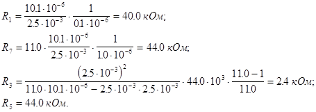 При указанном коэффициенте М сопротивления резисторов получаются равными: