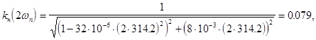 Коэффициент передачи фильтром гармонической составляющей удвоенной промышленной частоты