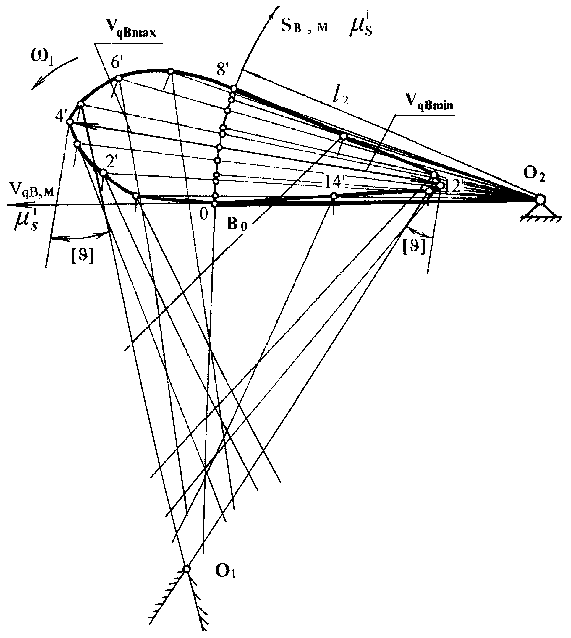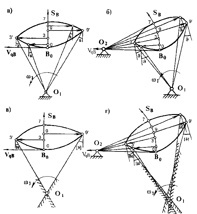 Определение кинематических передаточных функций, характеризующих изменение ускорения, скорости и перемещения толкателя, в функции времени или угла поворота кулачка.