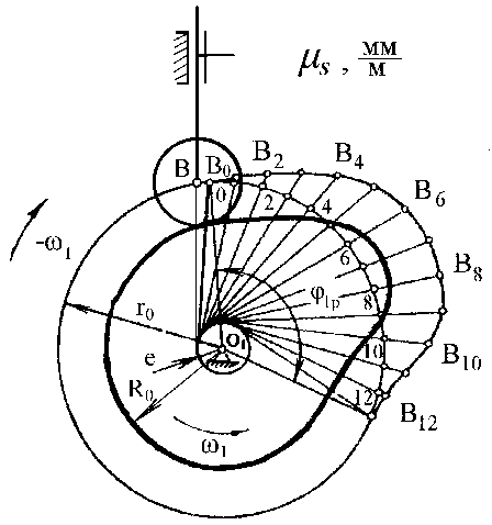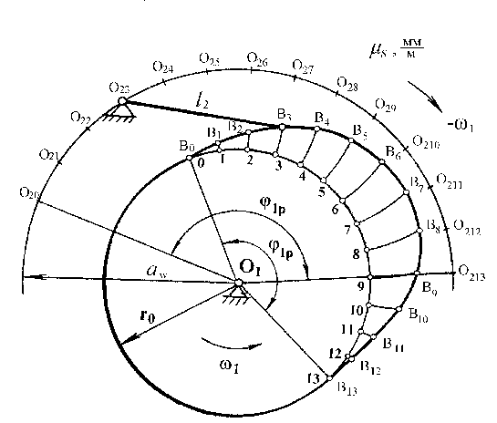 Проектирование кулачкового механизма может быть выполнено графическим методом либо по аналитическим зависимостям с применением ЭВМ. В учебных целях при выполнении курсового проекта используют сочетание графических методов определения параметров кулачкового механизма с анализом математических моделей и выполнением расчетов на ЭВМ.
