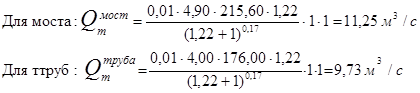 Fобщ – площадь водосборного бассейна нагорной канавы вместе с площадью водосборного бассейна верхового кювета, расход воды из которого отводится в нагорную канаву, равный 0,0425 км2 .