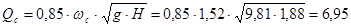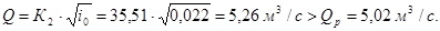 5. Определим расход воды, который может обеспечить наша канава при полученных в ходе расчета параметрах по формуле IV. [5] и сравним его с расчетным значениемQ р =5,02 м3 /с.