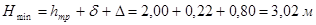 где Нвр – отметка верхней точки тальвега, равная 61,00 м;