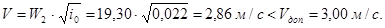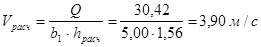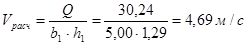 4. Определяем среднюю в сечении скорость по формуле IV.18 [5] и сравниваем с максимально допустимой скоростью для заданного типа укрепления, равной V доп = 3,00 м/с (см. приложение 22 [5]).
