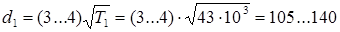Диаметр ведущего шкива рассчитываем по формуле: