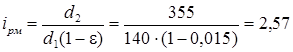 Выбираем диаметр ведомого вала равным d 2 =355 мм и уточняем передаточное отношение ремённой передачи: