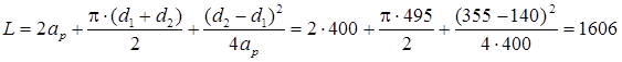 Принимаем величину рабочего межосевого расстояния aр = 400 мм. Расчётная длина ремня составляет: