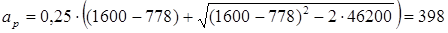 где w = 0,5·p·(d 1 + d 2 ) = 0,5·p·495 = 778 мм;