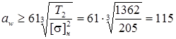 a min = 0,55·(d 1 + d 2 ) + T 0 = 0,55·(140+35)+10,5 = 283 мм, (10)
