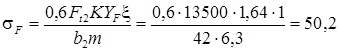 где k t – эффективный коэффициент концентрации нормальных напряжений, для шпоночного паза k t =1,49 [1, c.163]; et – масштабный фактор по нормальным напряжениям, et =0,67; yt – учитывает влияние материала, yt =0,1 [1, с.164].