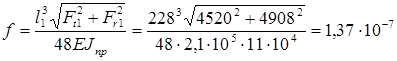 Проверим стрелу прогиба червяка (расчёт на жёсткость).