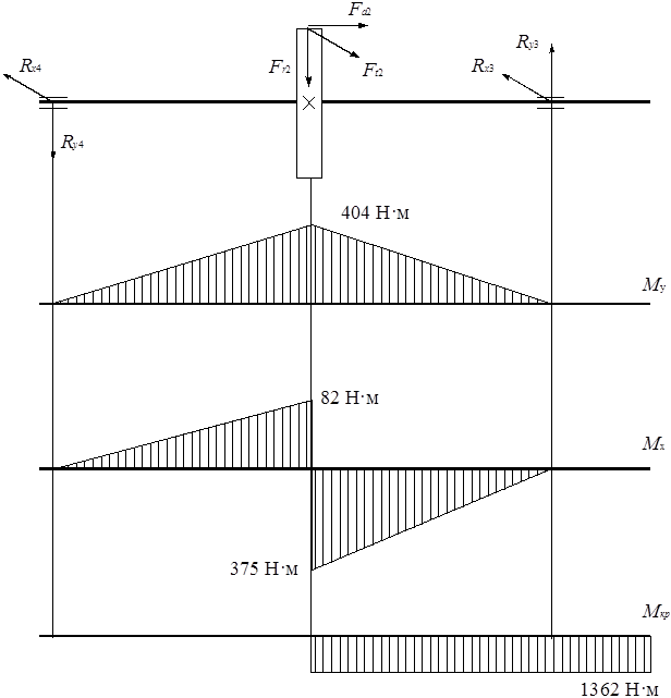 Рис. 4. Силовая схема нагружения ведомого вала редуктора