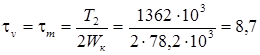 Коэффициент запаса прочности по касательным напряжениям: