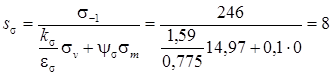 Коэффициент запаса прочности по нормальным напряжениям: