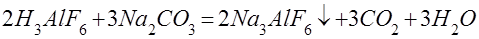 , в результате чего образуется вторалюминиевая кислота, которую нейтрализуют содой и получают криолит, выпадающий в осадок: