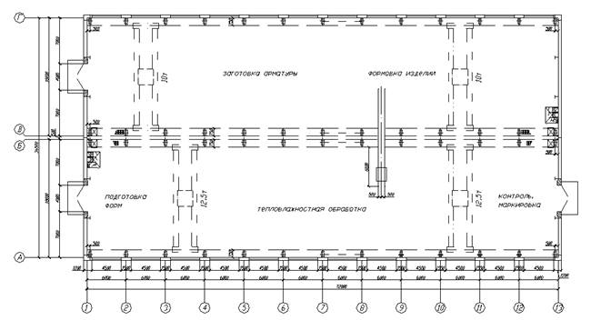 По типу подъемно-транспортного оборудования данное промышленное здание относится к крановому (с мостовыми кранами 10т и 12,5т).
