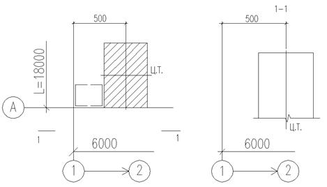 К крайним поперечным осям, колонны имеют привязку 500 мм - оси 1, 13 т.е. геометрические оси сечения колонн смещены внутрь от разбивочной оси на 500 мм.
