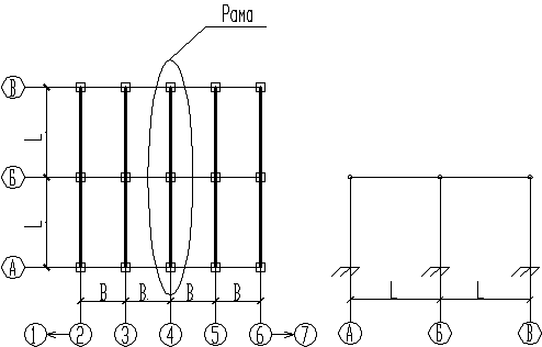 Рис. 4.1. Каркасная рамно-связевая конструктивная схема