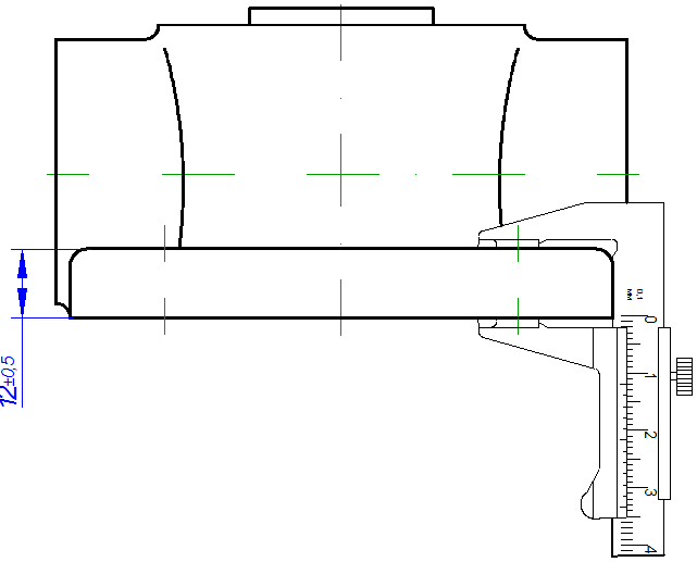 контроль размера торца при помощи штангенциркуля ШЦI-125-0.1 ГОСТ 166-89