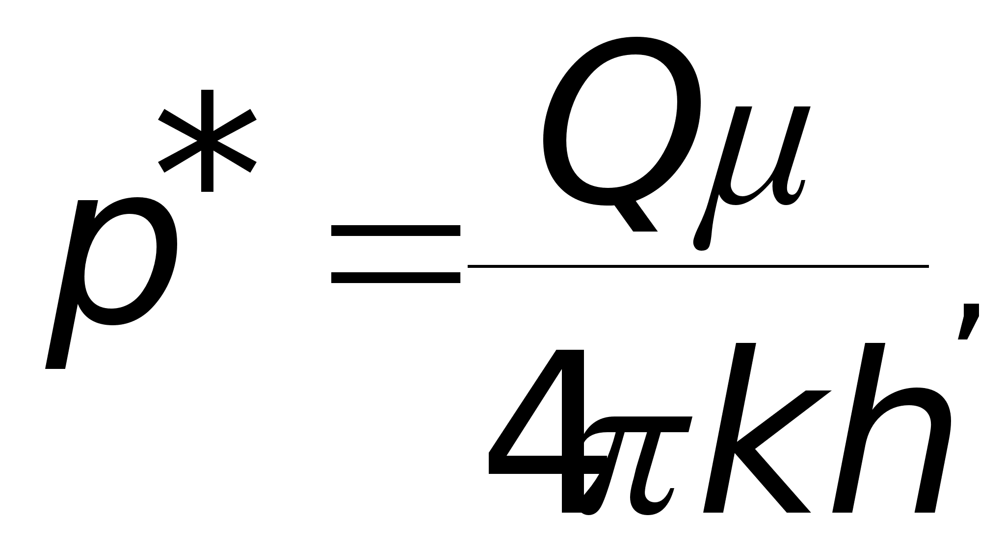 Уравнение, описывающее изменение давления на забое, т. е. при =h; r=rc или r=rc, имеет вид