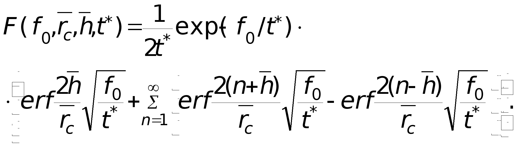 Рассмотрим функция (F) которая есть функция пяти параметров F=F (f0, rc, h, , t*), каждый из которых — безразмерная величина, соответственно равная
