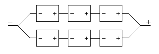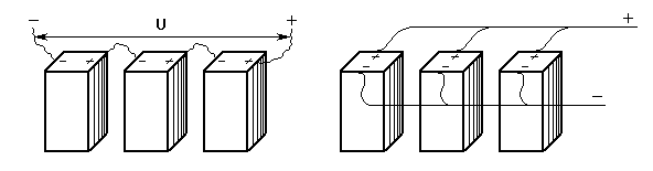 Рис.6. Последовательное и параллельное соединение элементов в батарею.