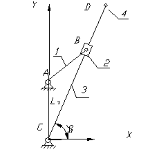 Определим угол q - между крайними положениями кулисы. Для этого рассмотрим прямоугольный треугольник АВоС, где <АВоС=90°, т.к. в крайних положениях кулиса является касательной к окружности радиусом Lab с центром в точке А.