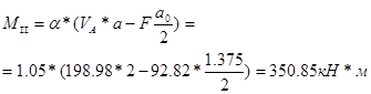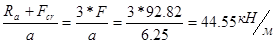 åy = 0 : Va = 2*Fn *gn – Vb = 2*85*0.95 – 117.76 = 43.74 кН.