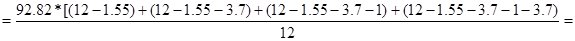 = 193.38*6.25 – 92.82(6.25 – 1.55) – 92,82(6.25 – 5.25) =