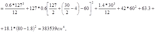 Момент инерции площади сечения условной стойки без учета (в виду малости) момента инерции стенки
