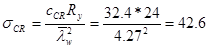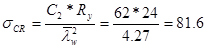 Для второго случая критическое нормальное напряжение по формуле (75) СНиП