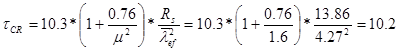 Касательные критические напряжения по формуле (76) СНиП