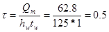 По табл.1 СНиП [3] вычисляем для стенки расчетное сопротивление стали на сдвиг (срез) : Rs