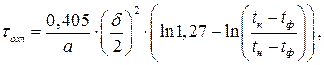 – температура в середине стенки изделия, при которой раскрывается форма, °