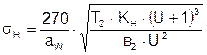 Визначаємо міжосьову відстань з умови контактної витривалості активних поверхонь зубців: