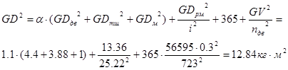 Маховой момент системы электропривода, приведённый к валу двигателя из уравнения: